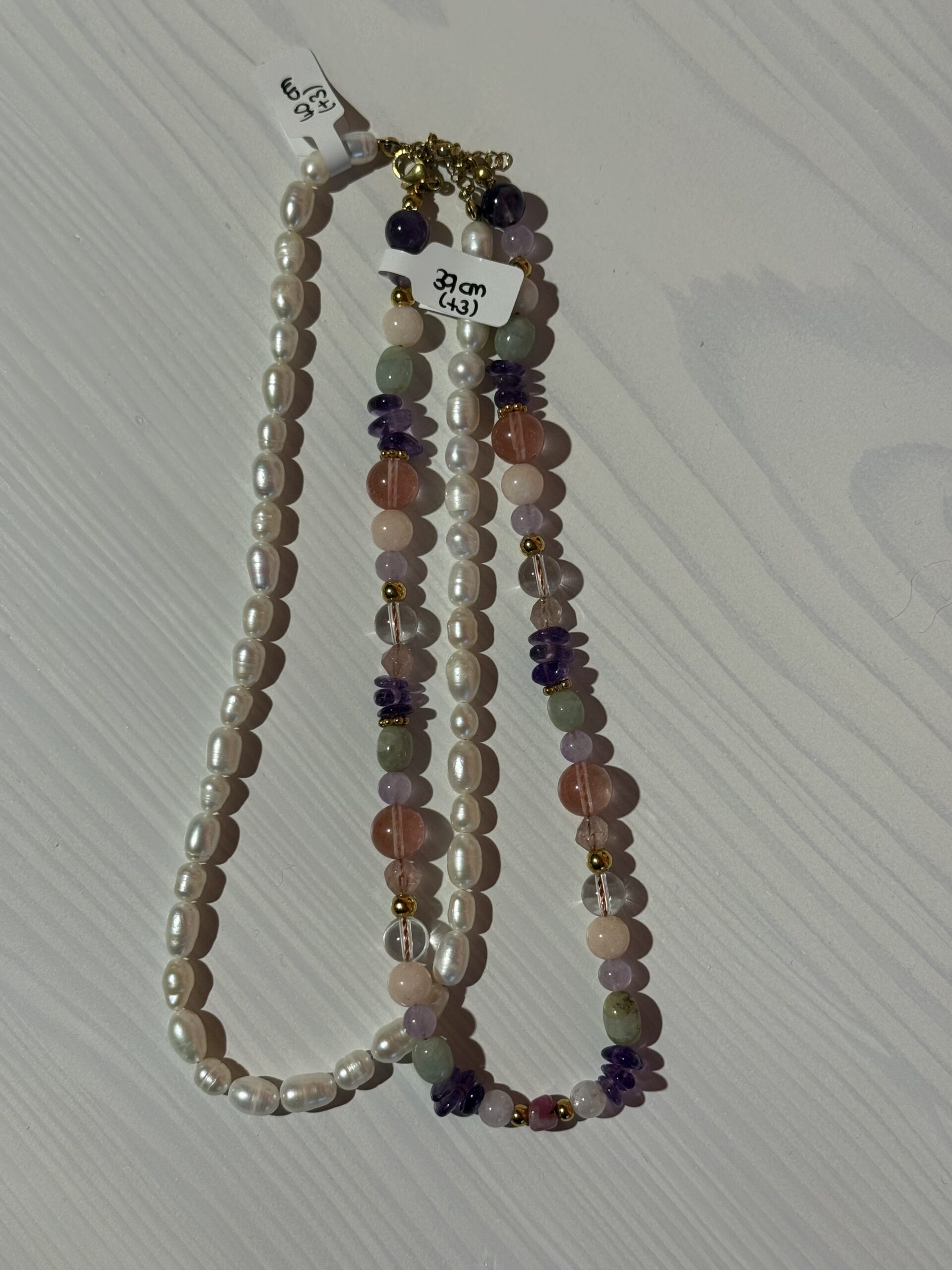 Material: Edelsteine: Prehnit, Andenopal, Amethyst, Lavendel-Amethyst, Bergkristall, Rosenquarz, Turmalin