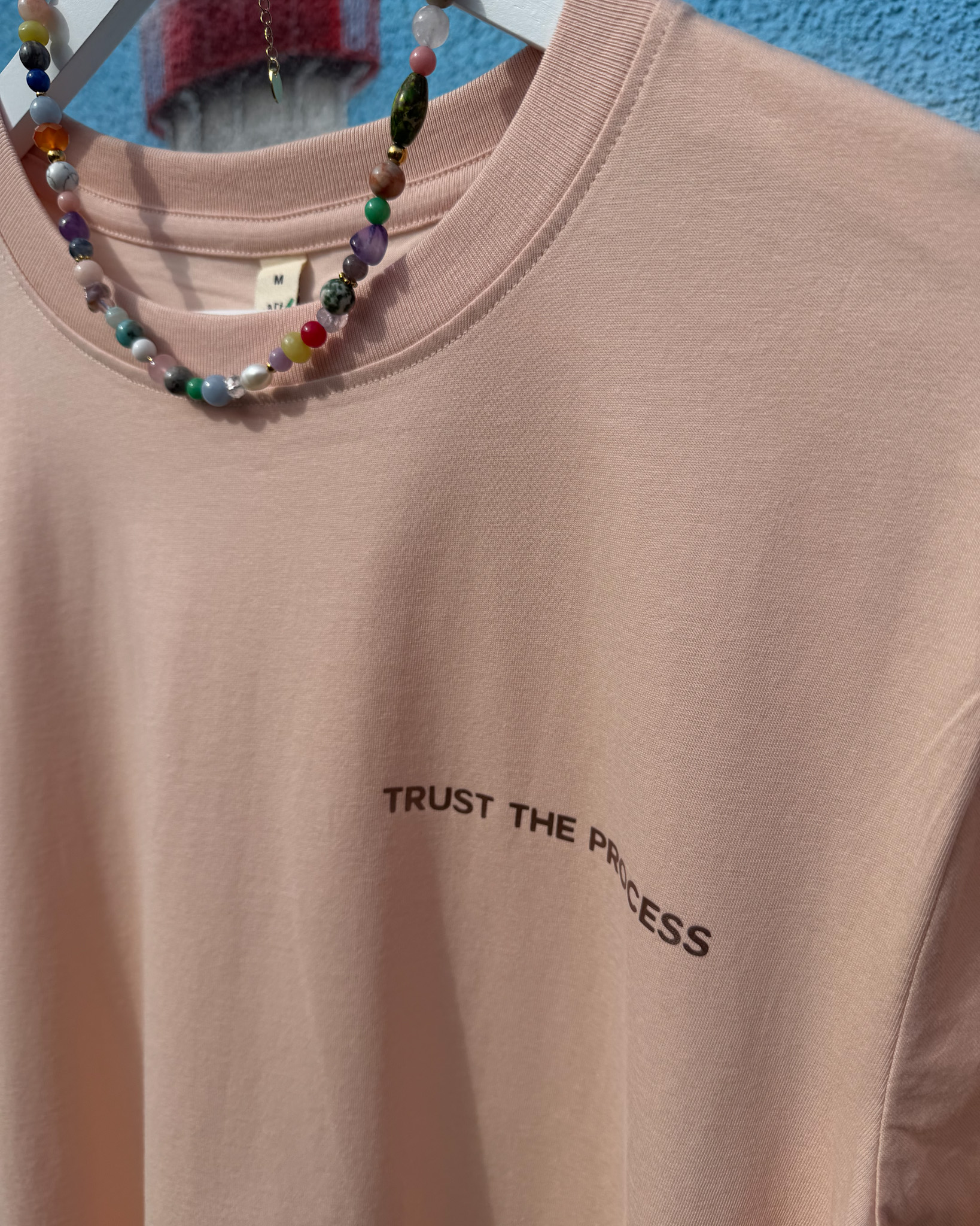 Die soften Farben treffen auf einen cleanen Print und machen es zu einem Piece, das du easy jeden Tag tragen kannst. Unaufgeregt, aber mit Message.