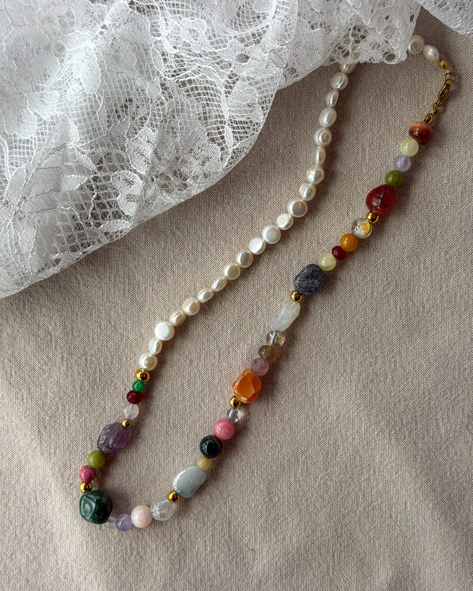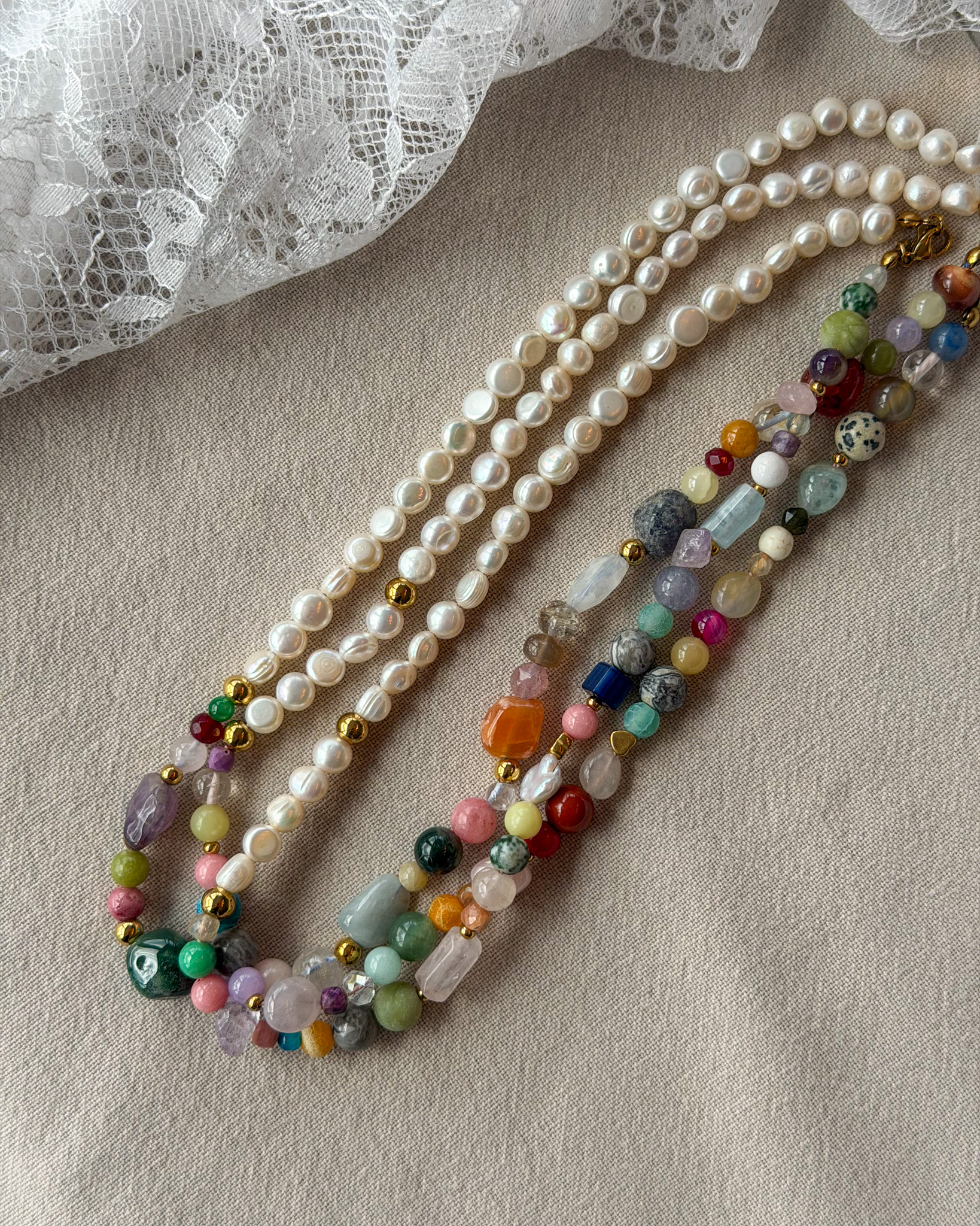 – Gefertigt aus schimmernden Edelsteinen und Süßwasserperlen